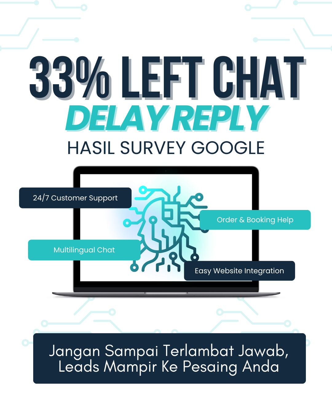 1 dari 3 pelanggan (≈33%) akan meninggalkan sesi chat setelah menunggu selama 2 sampai 3 menit tanpa respon. Respon yang lebih cepat adalah kunci untuk mencegah kehilangan calon jamaah atau calon pelanggan